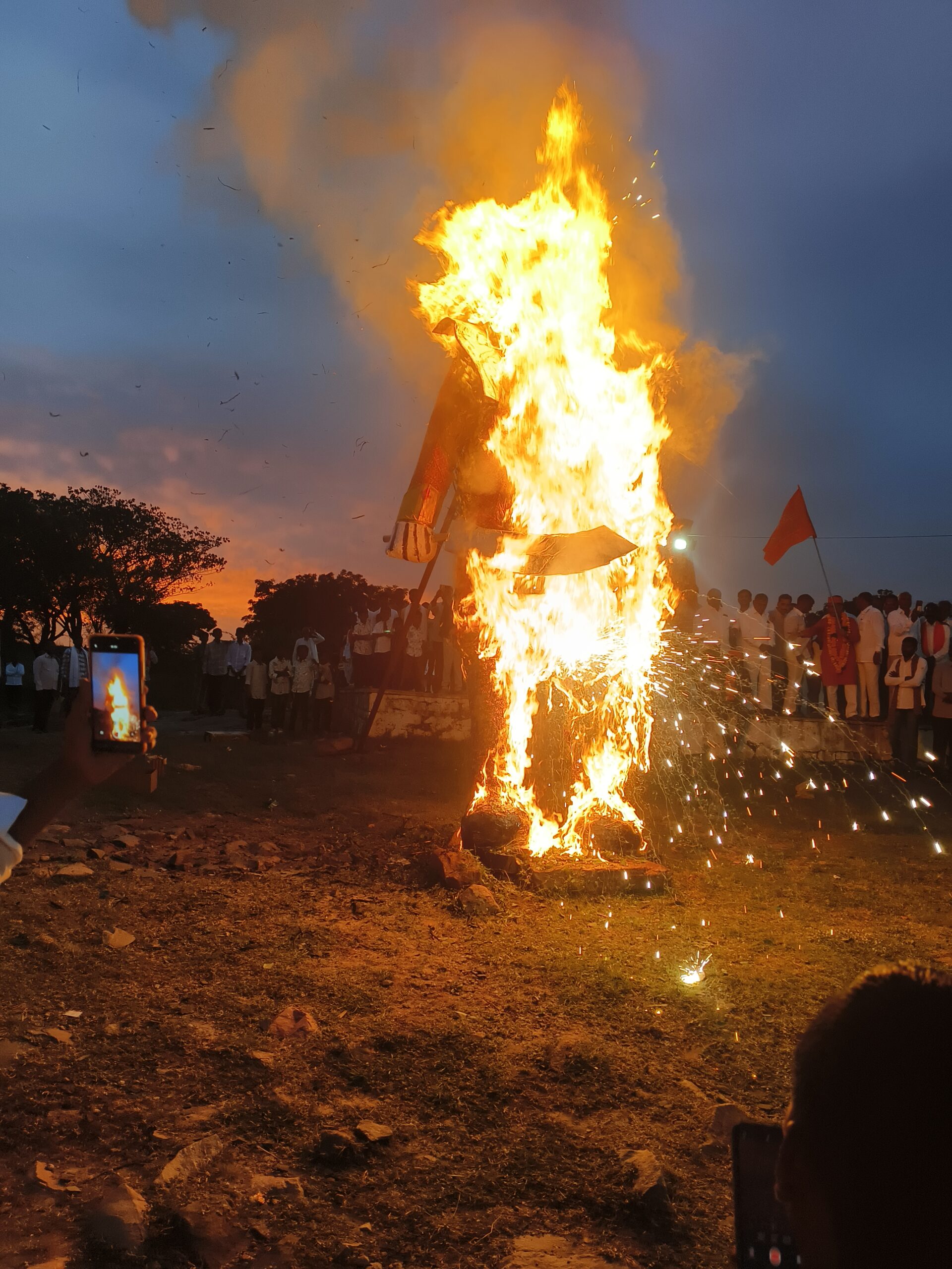 - మద్నూర్ మండలకేంద్రంలోని ఎల్లమ్మ బండల్లో విజయదశమి పండుగను ఈ ఏడాది మరింత ఉత్సాహంగా జరుపుకున్నారు. ప్రతీ ఏటిలాగే ఈసారి కూడా రావణ దహనం ఘనంగా నిర్వహించగా, వేలాది మంది గ్రామస్థులు పాల్గొన్నారు. ఉద్యోగానిమిత్తం బయటి ప్రాంతాల్లో ఉన్నవారు కూడా స్వగ్రామానికి చేరుకుని ఉత్సవాల్లో పాల్గొని ఆనందాన్ని పంచుకున్నారు. ఒకరితో ఒకరు శుభాకాంక్షలు తెలుపుకుంటూ, ఆలింగనం చేసుకుంటూ దసరా పండుగను ప్రత్యేకంగా జరుపుకున్నారు.